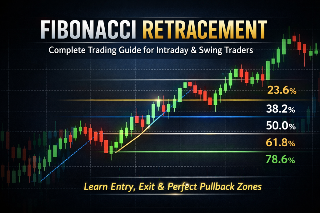 Fibonacci retracement is one of the most popular and trusted tools in technical analysis used by intraday traders, swing traders, and even investors. It helps traders identify support, resistance, and high-probability reversal zones.